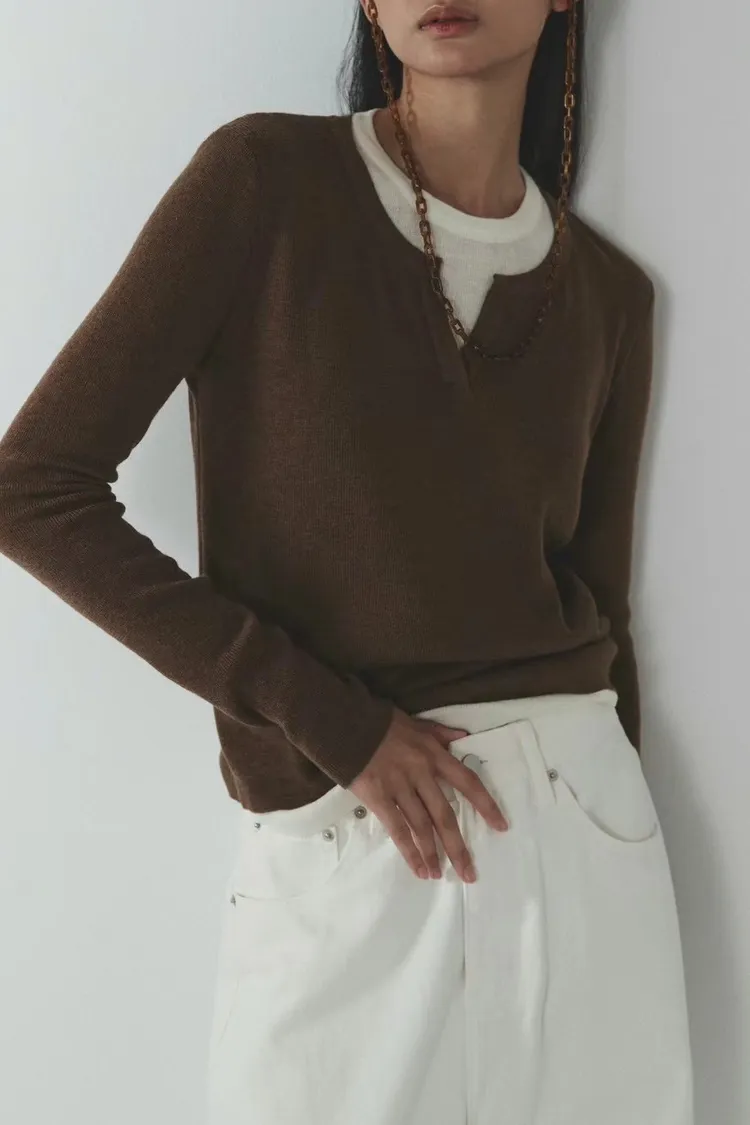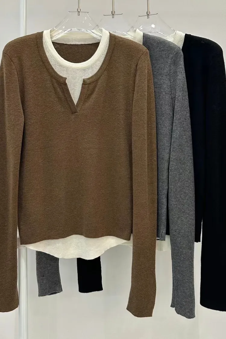 商品描述:今年miu miu風當道,假兩件就是in到不行!絕對要跟上這一波,混羊毛材質親膚不刺,一衣就能有疊穿效果,很有