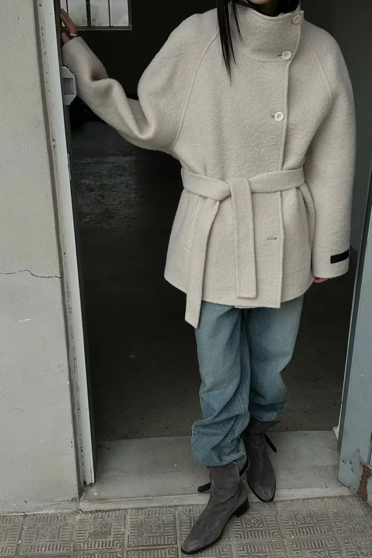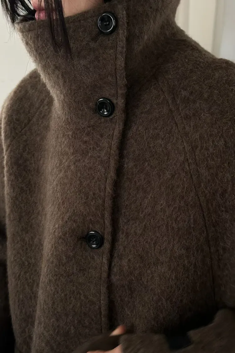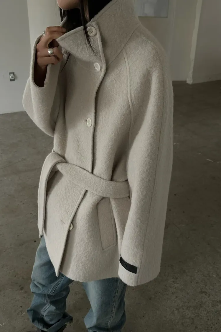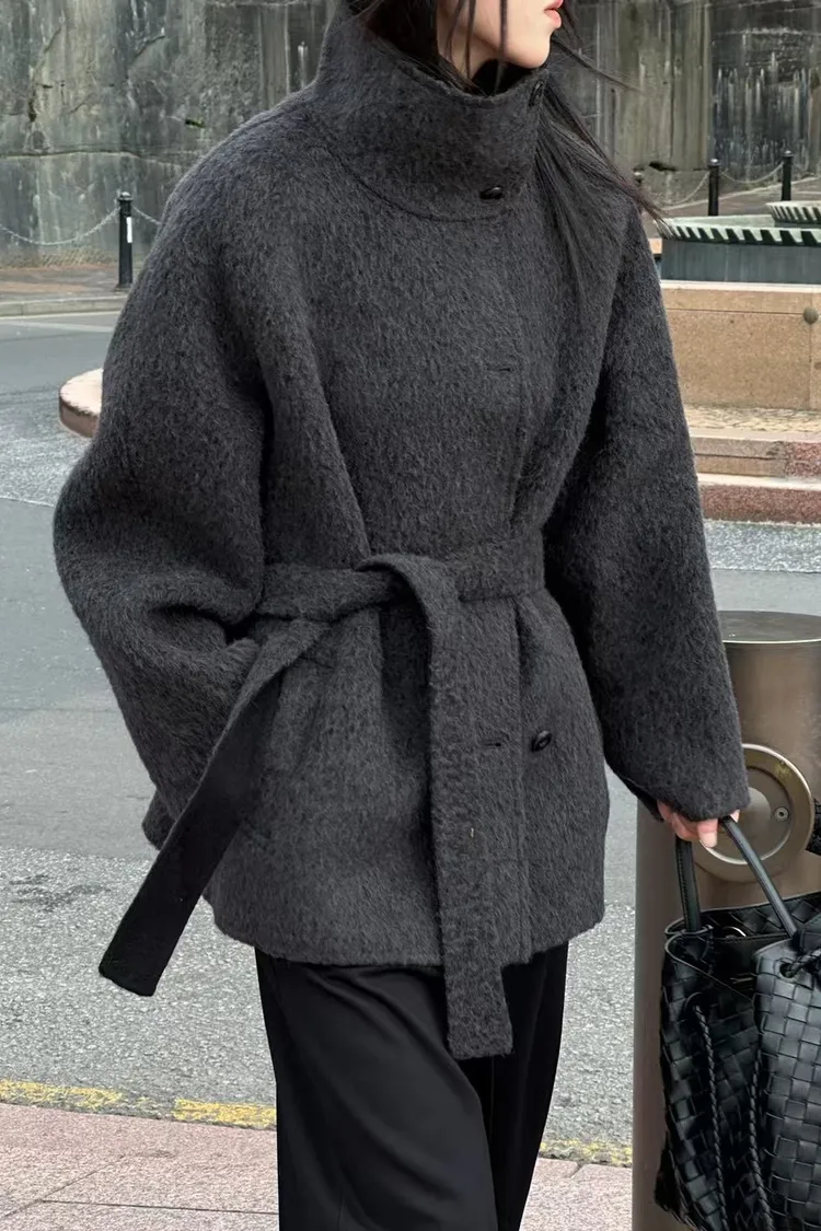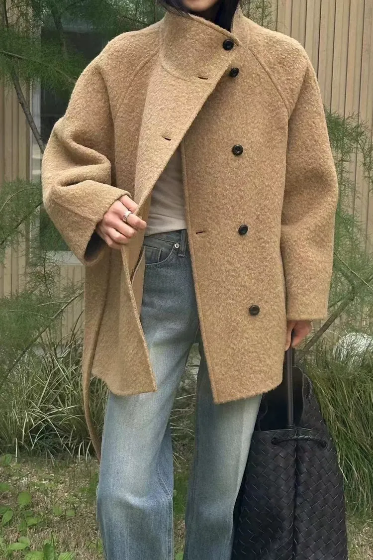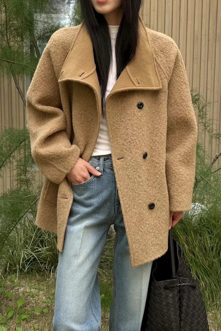 商品資訊顏色:駝材質:alpaca 50 % wool 50%描述:此大衣太美,是我遇過最輕的手工大衣,剪裁完美,整體廓形很好看,面料質感好,穿上身有立體度,領子可翻領也可立領,內外羊毛面料材質有著異衝突的美感,推薦!