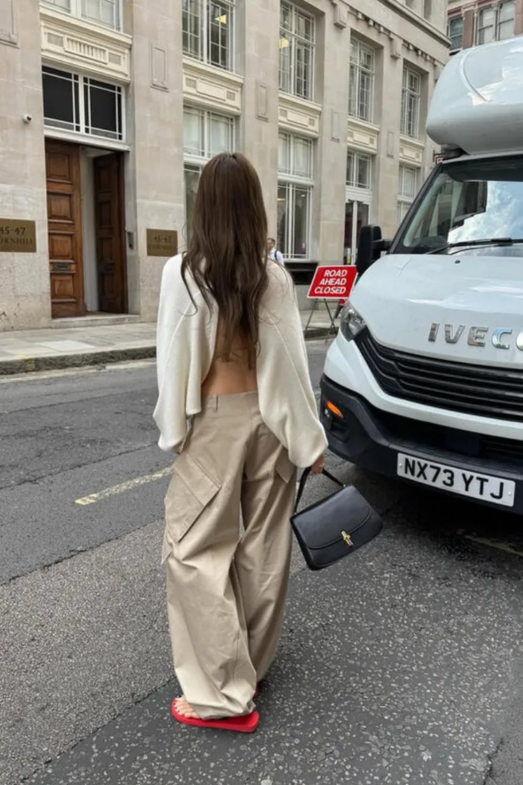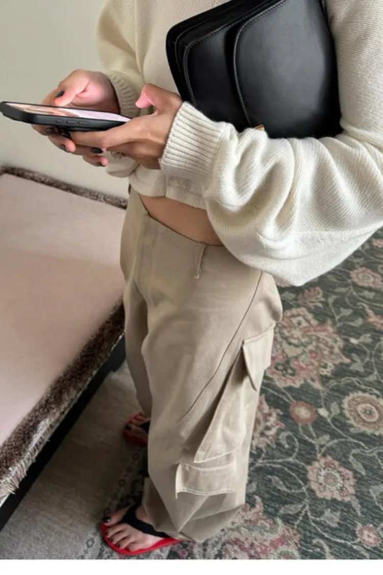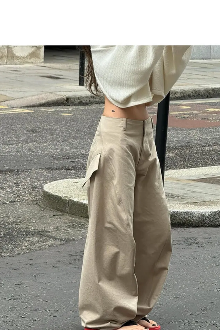 II162-左右不對稱斜口袋造型卡其褲