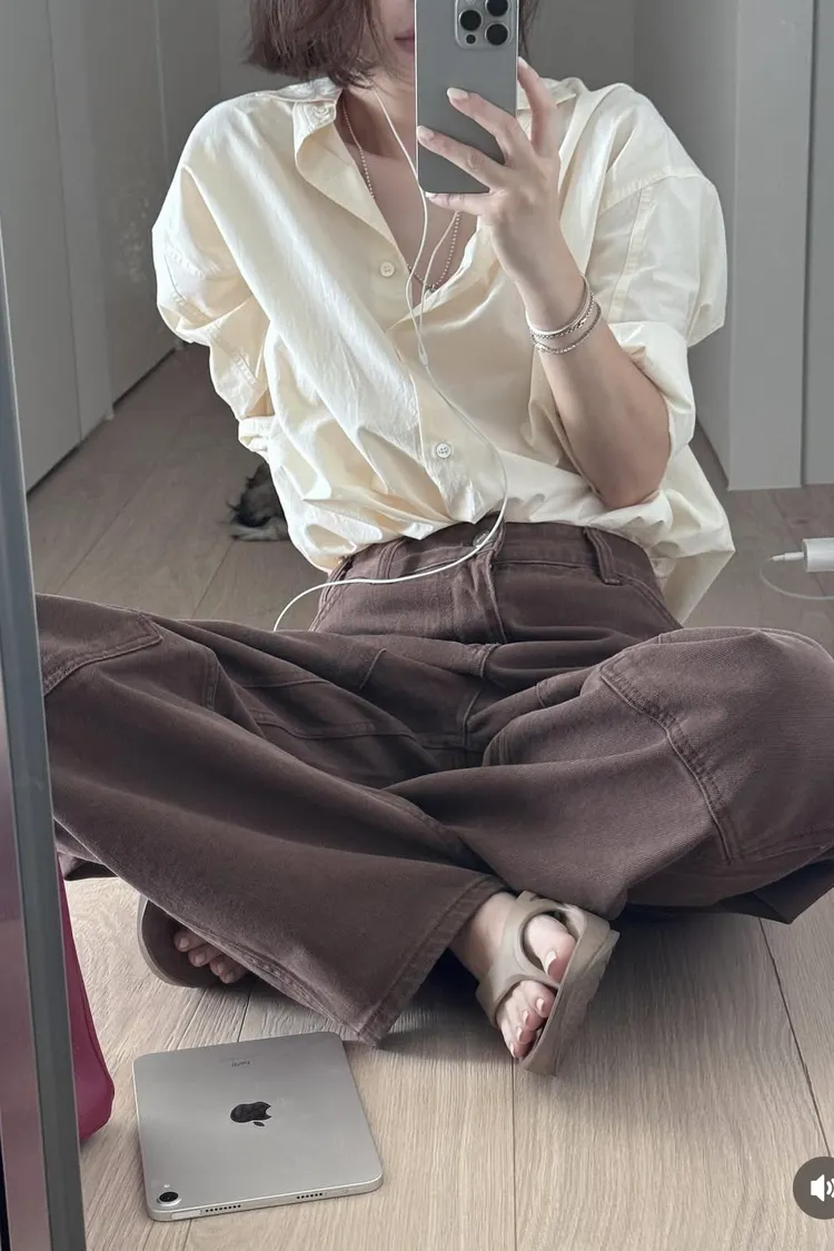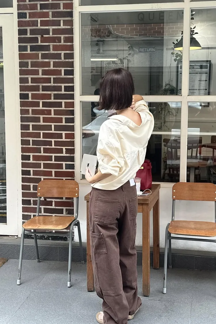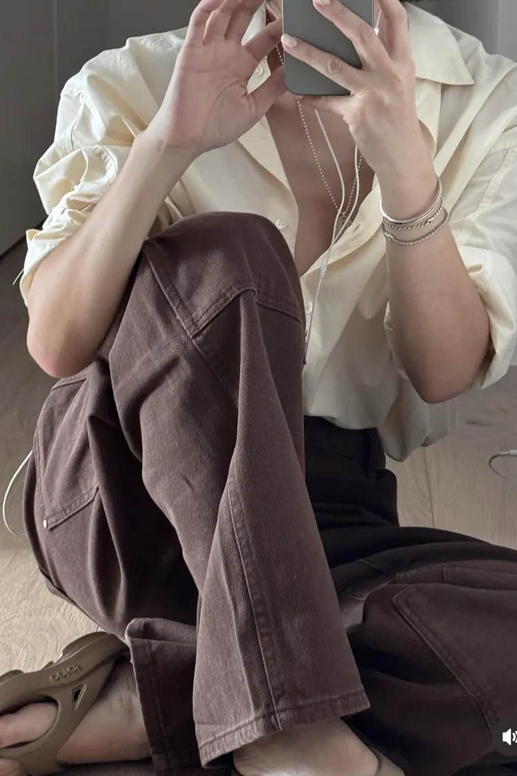 II164-小眾品牌款-巧克力咖直筒工裝丹寧褲