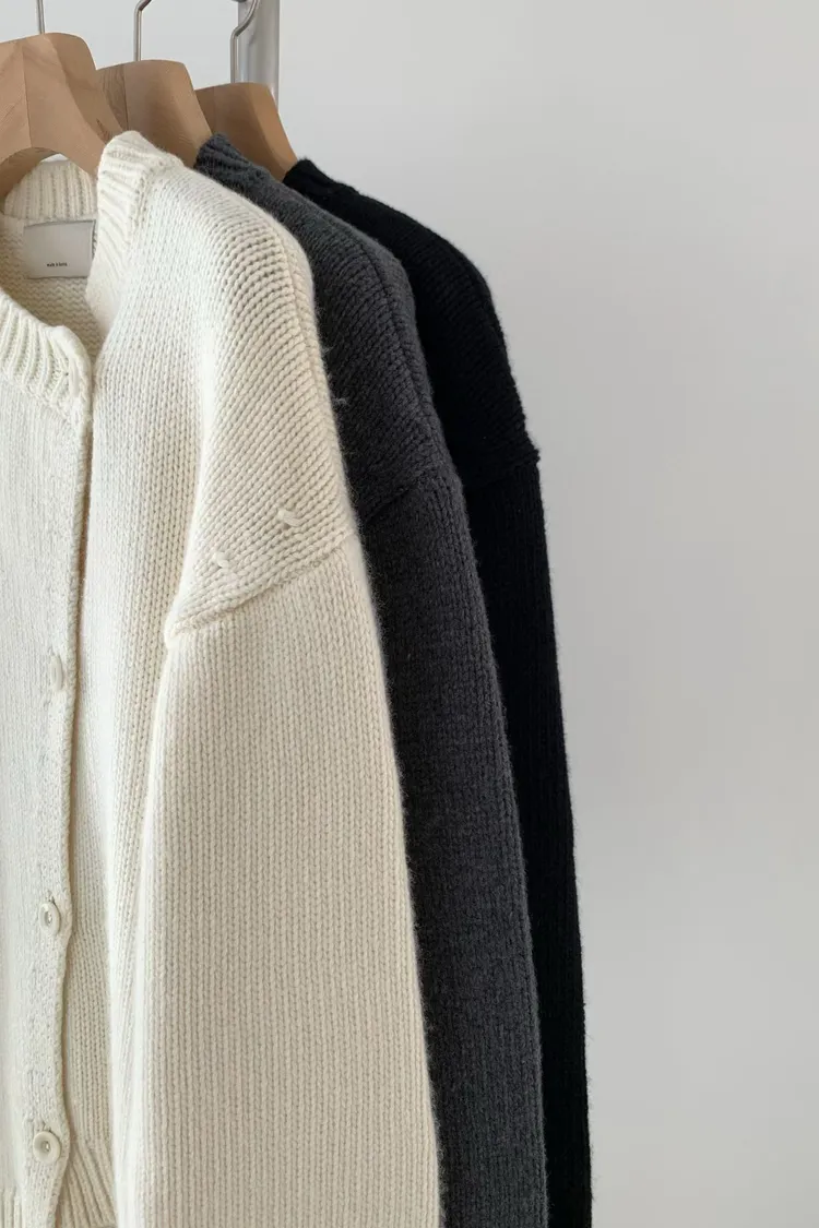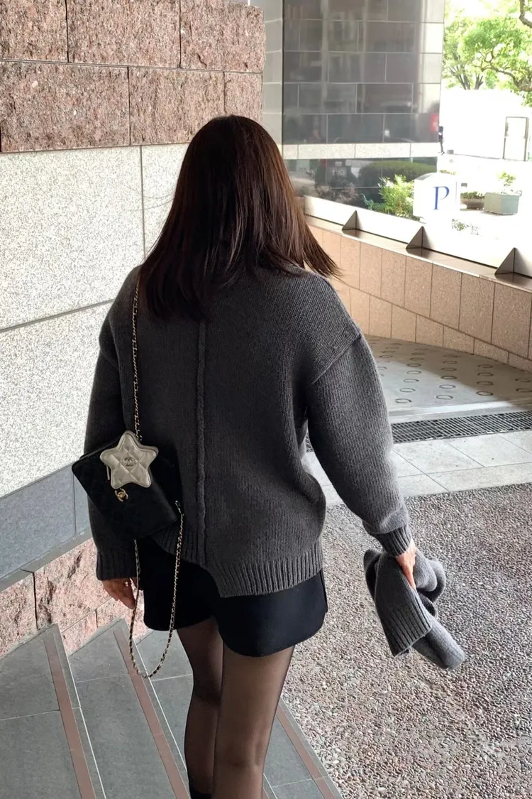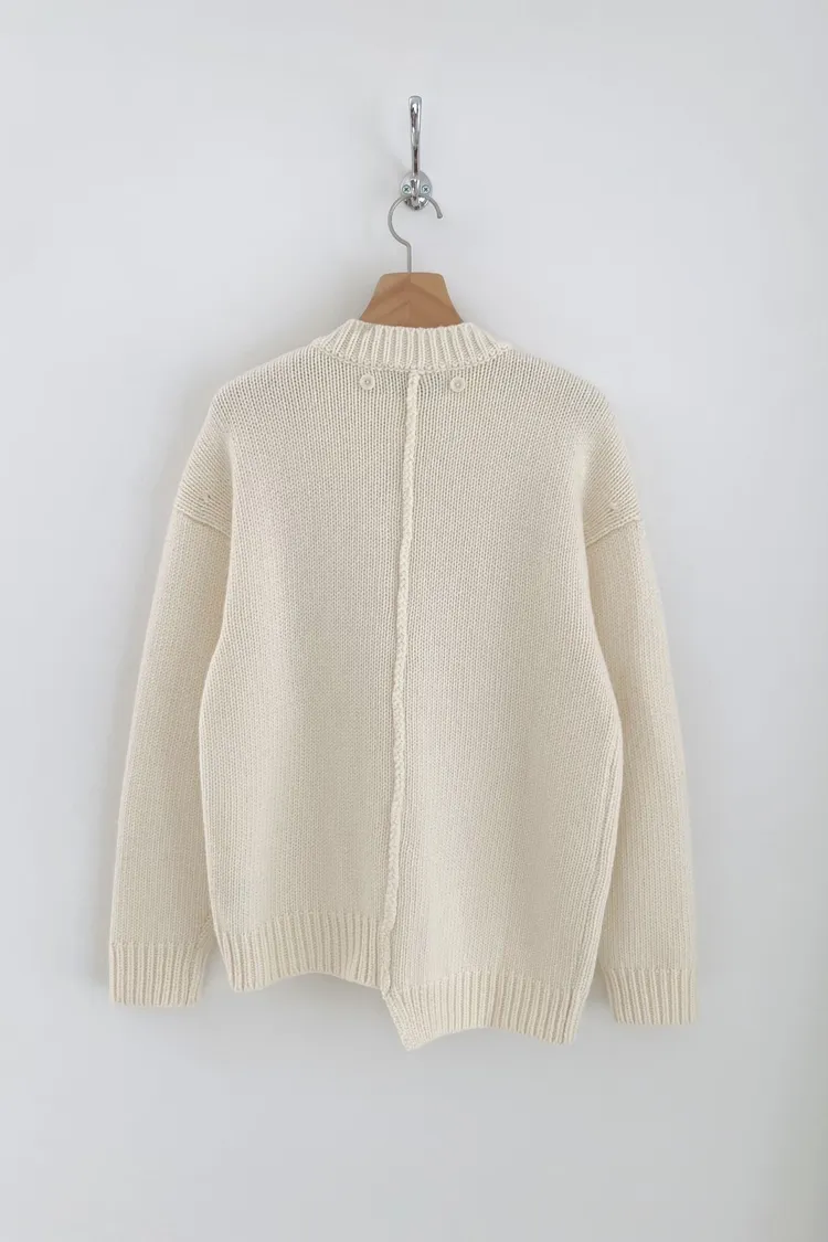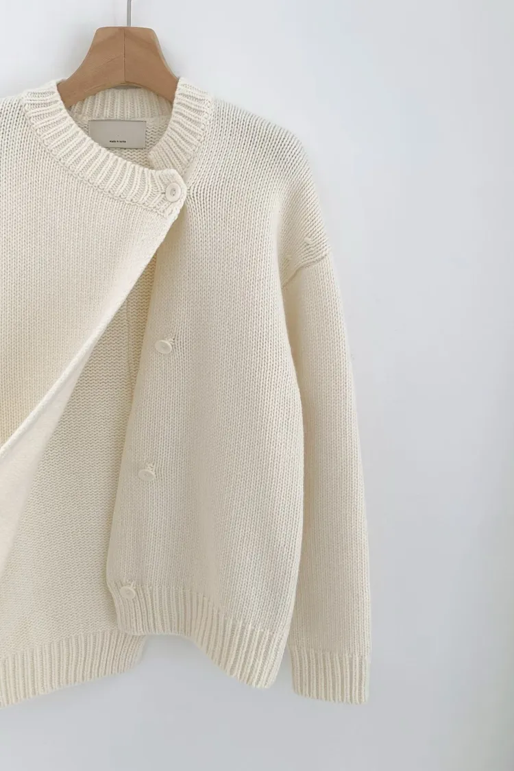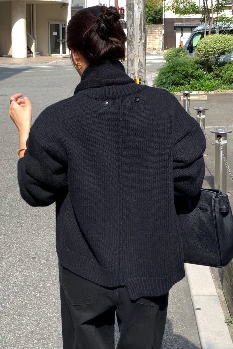 II175-脖圍設計的廓形斜釦毛衣外套