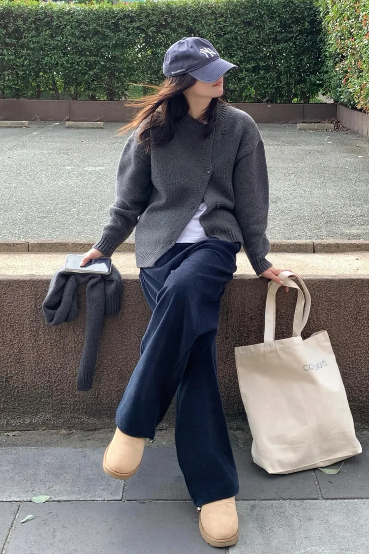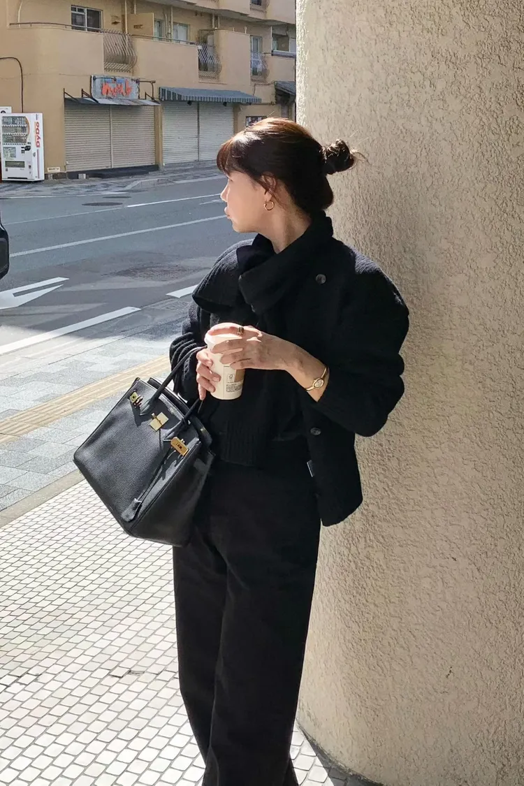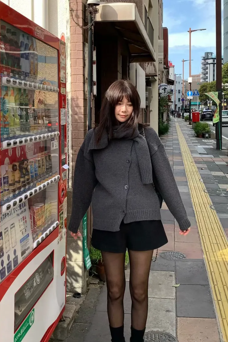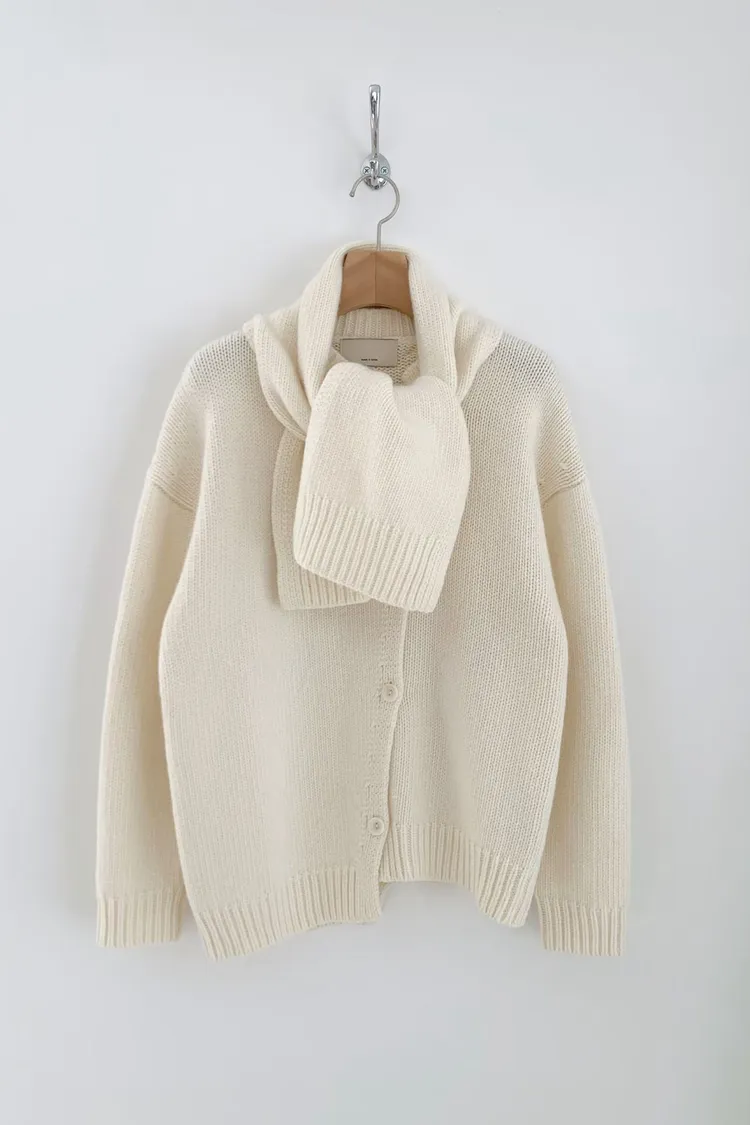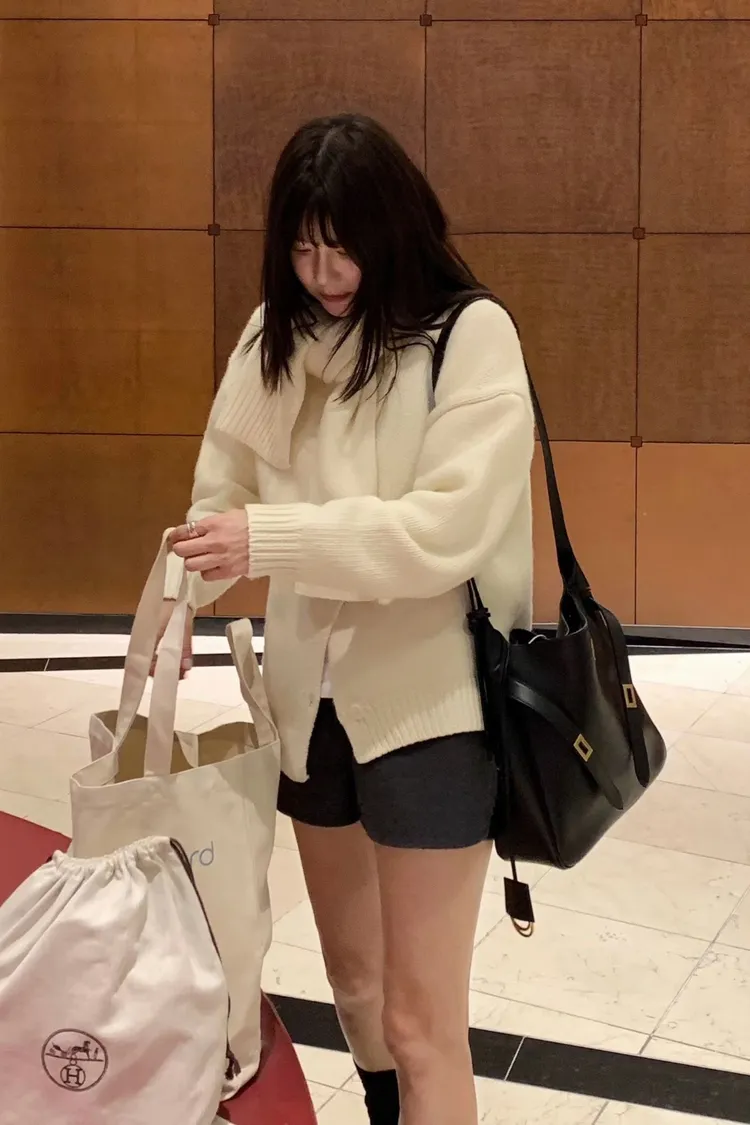 II175-脖圍設計的廓形斜釦毛衣外套