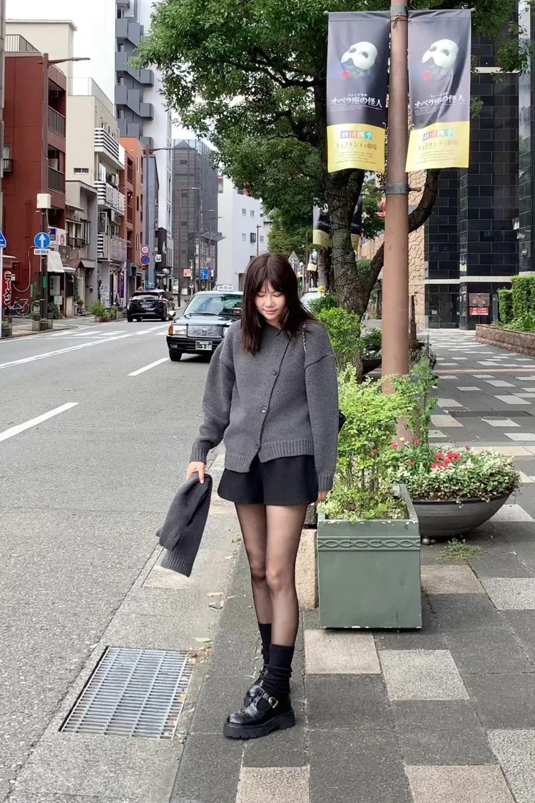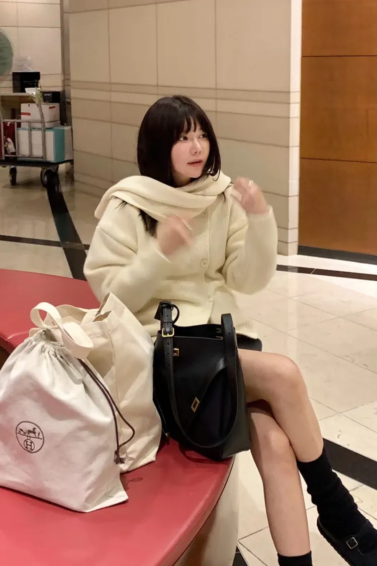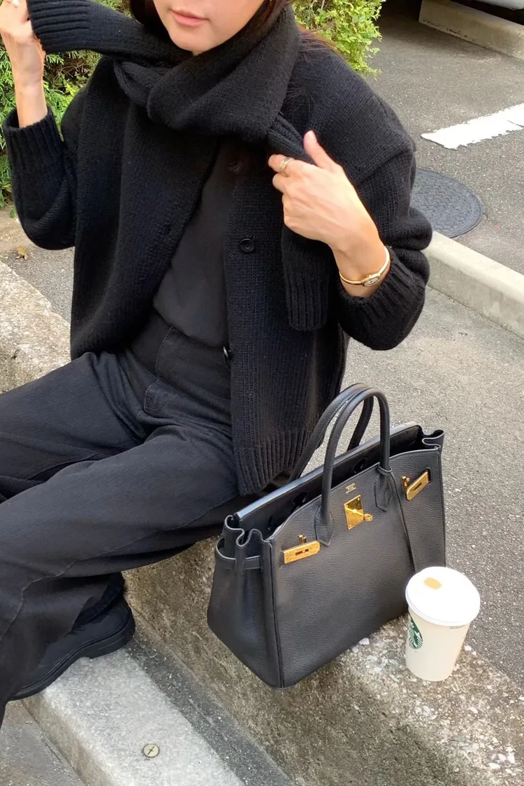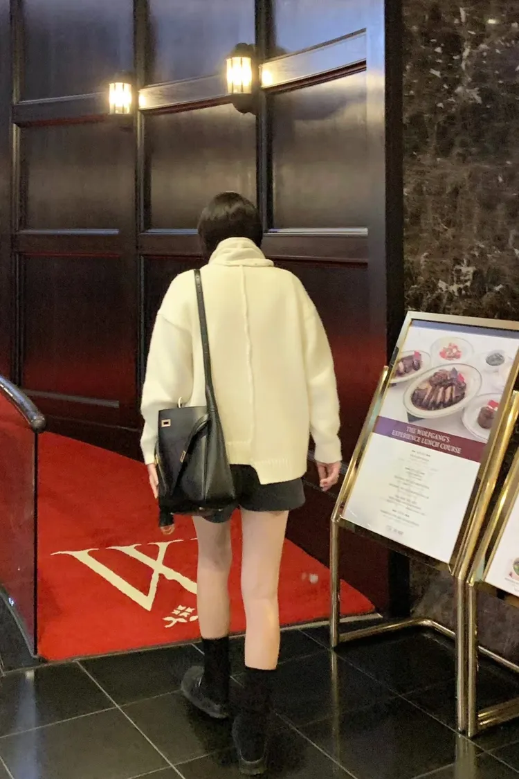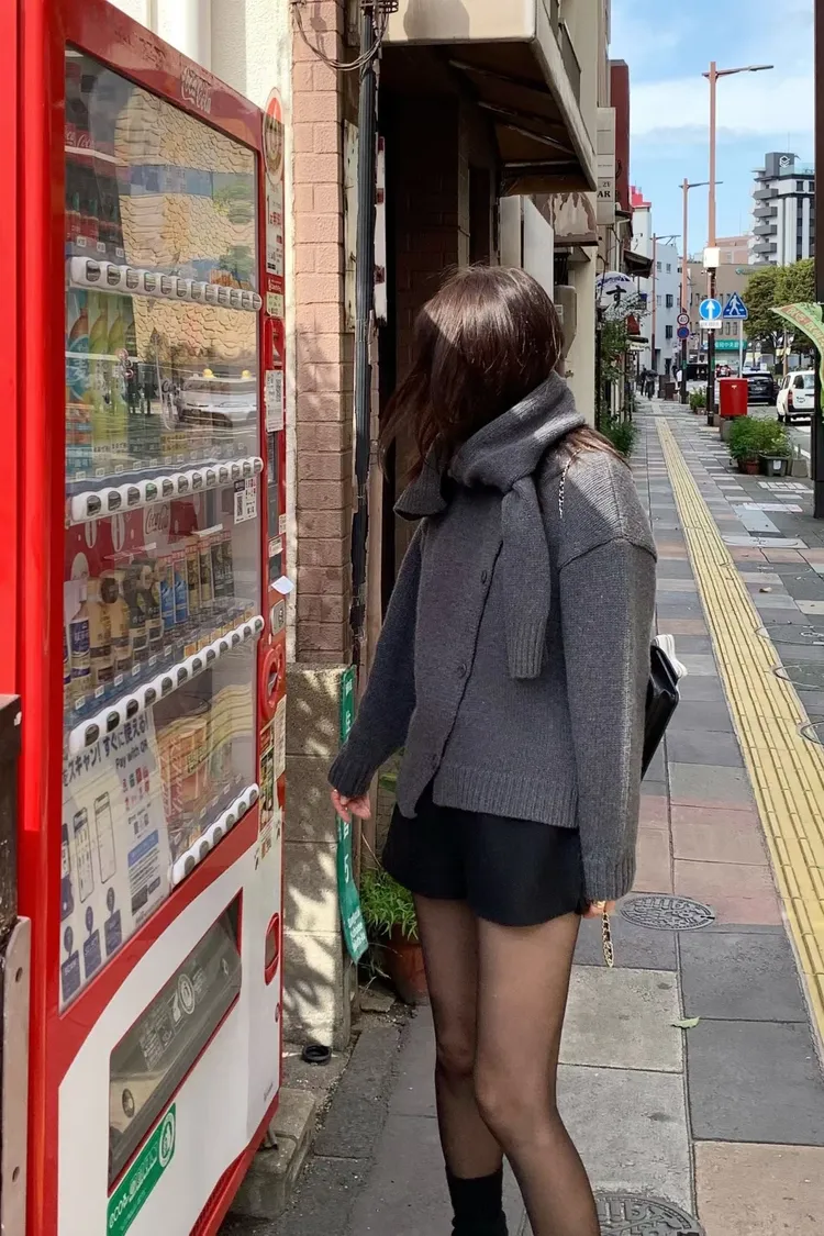 II175-脖圍設計的廓形斜釦毛衣外套