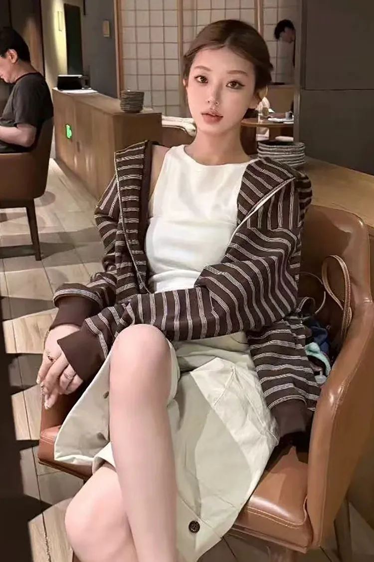 II186-極細條紋Miu系連帽外套