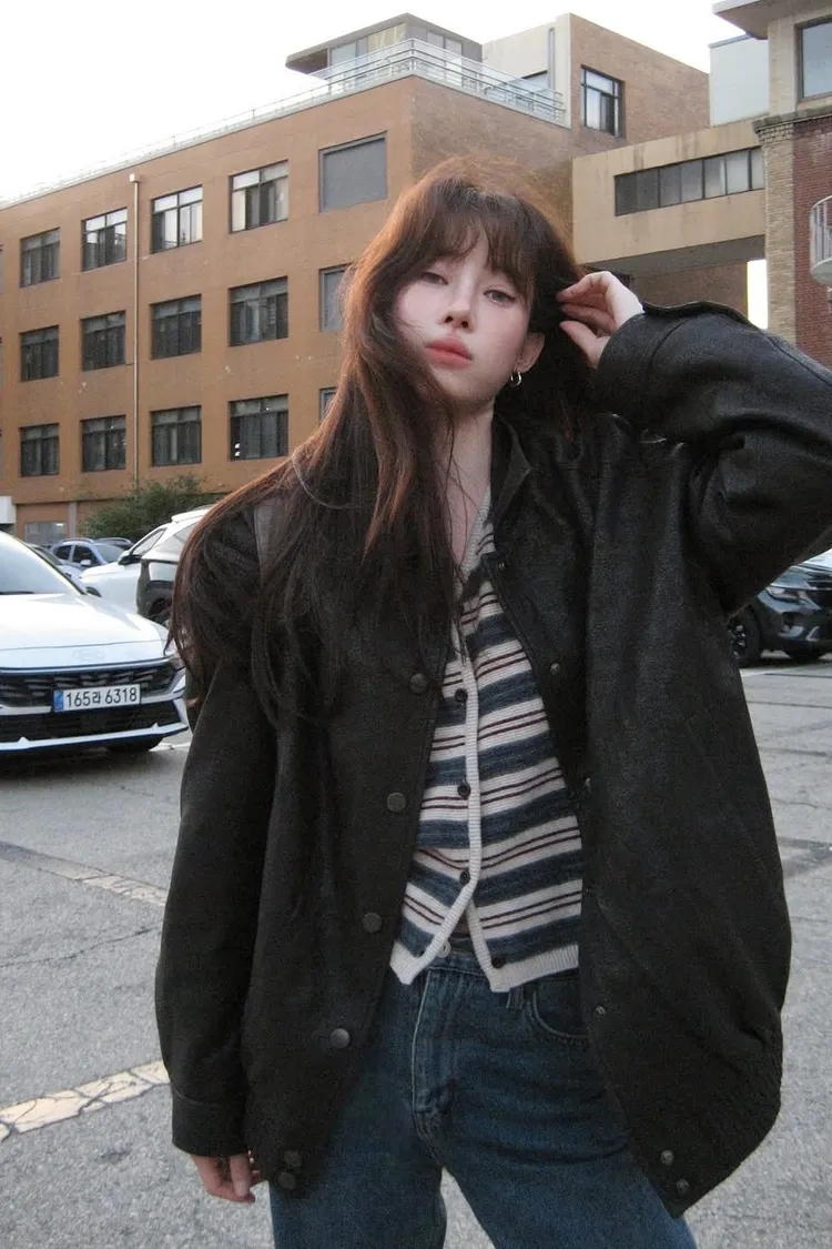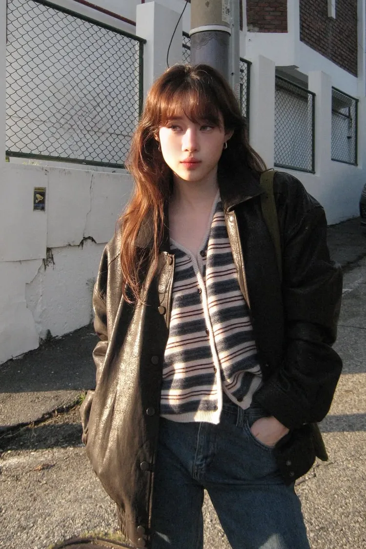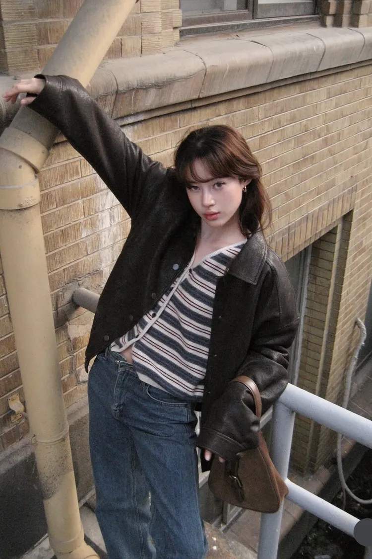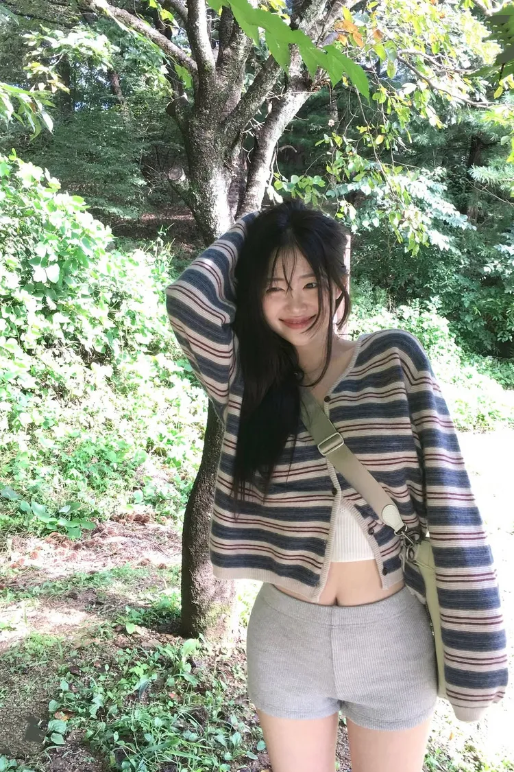II191-獨立小眾品牌-復古拼色條紋開衫