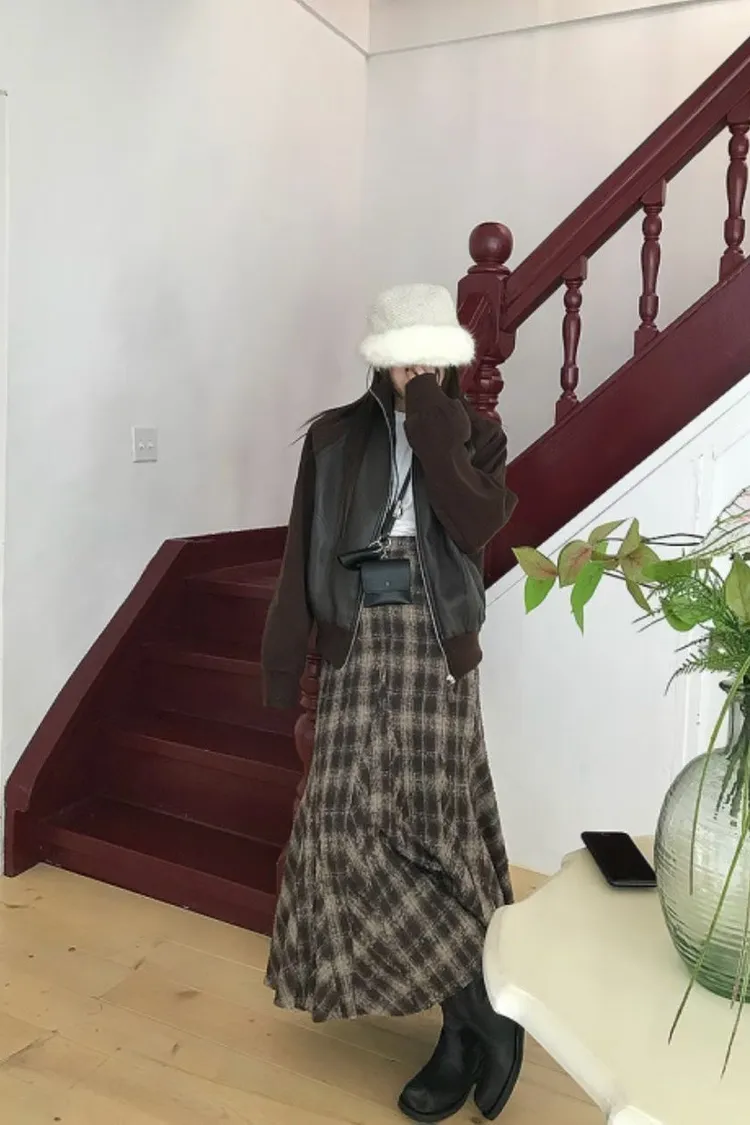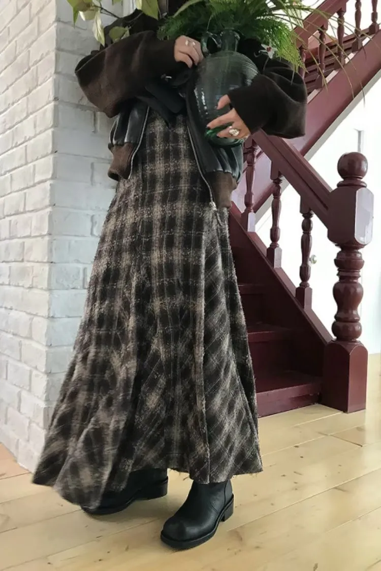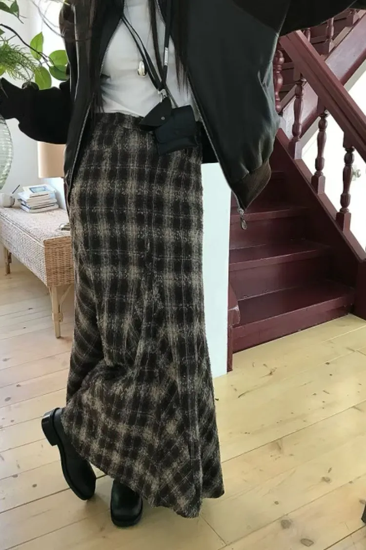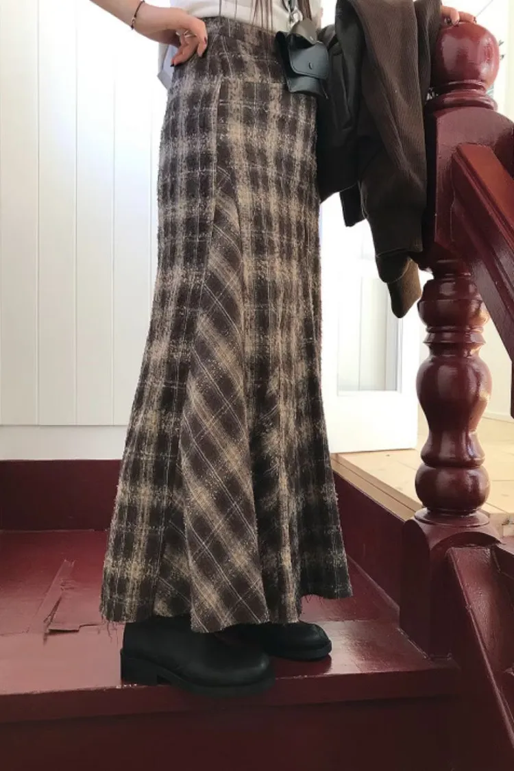 II208-復古風格紋毛呢小魚尾裙