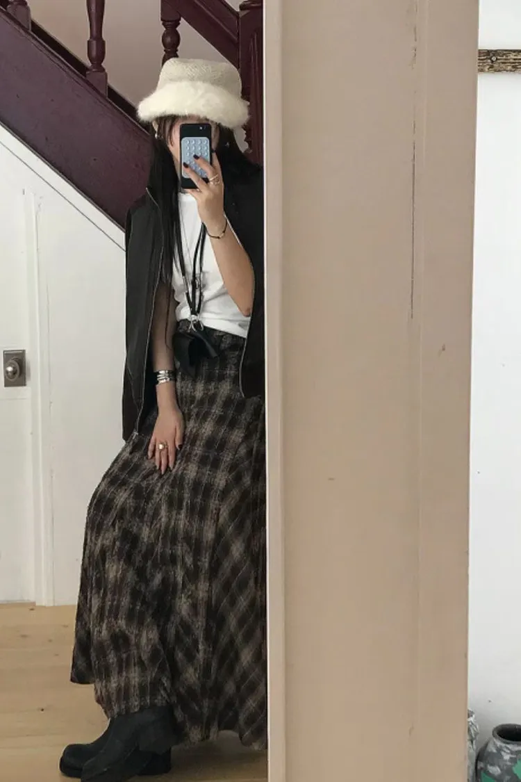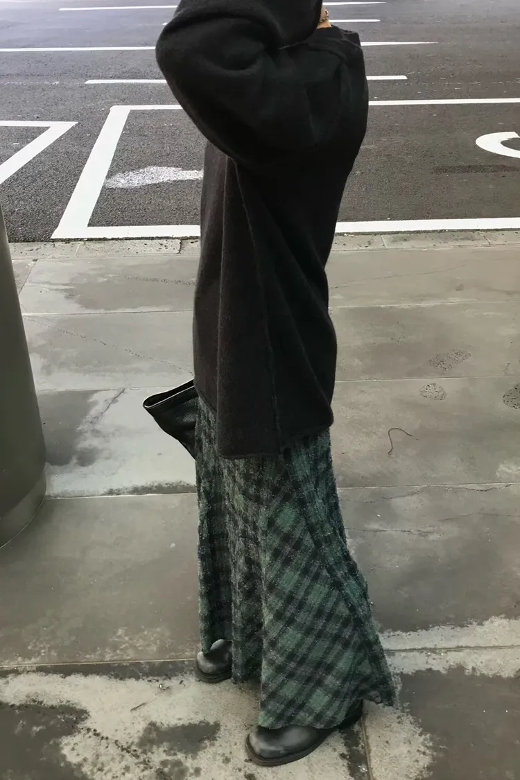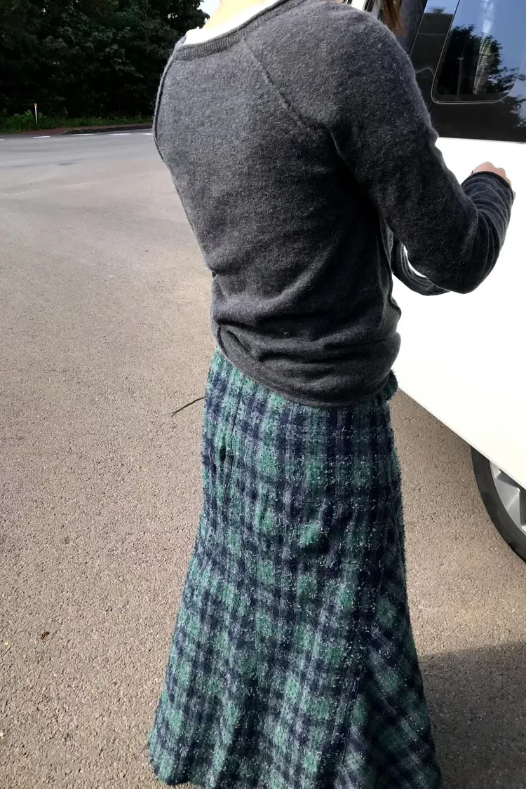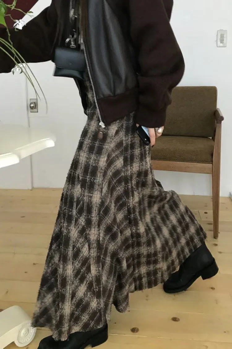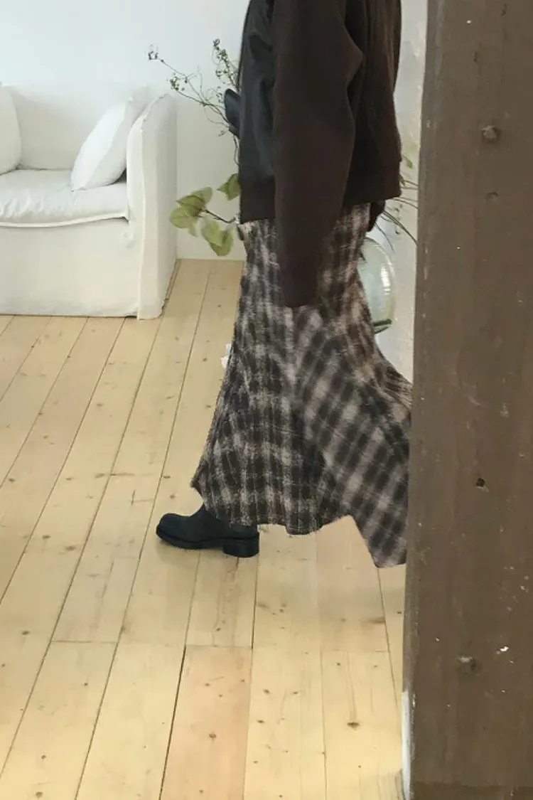II208-復古風格紋毛呢小魚尾裙