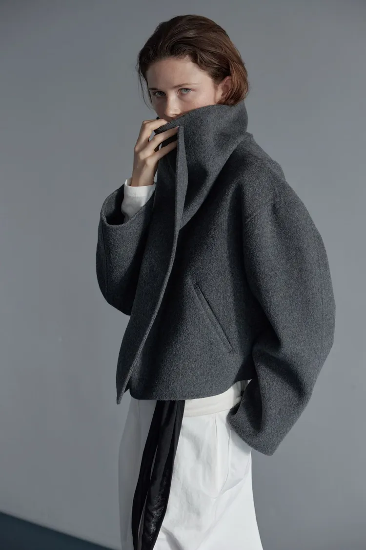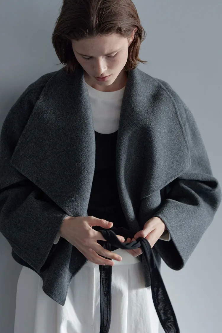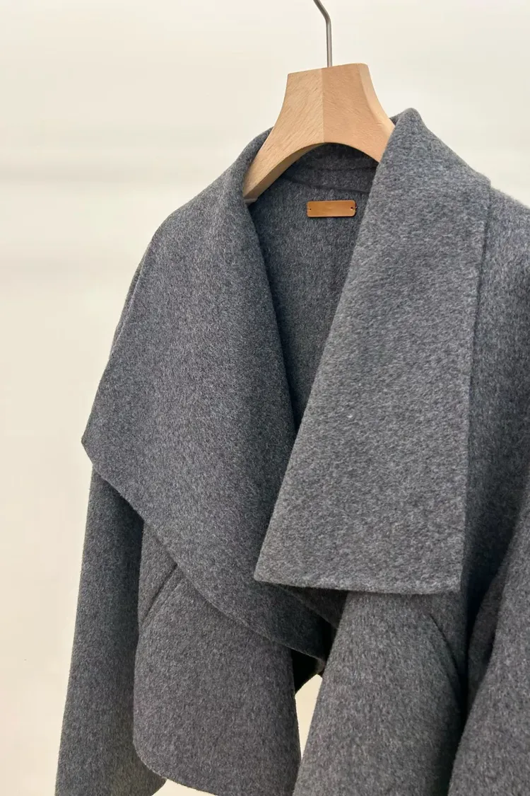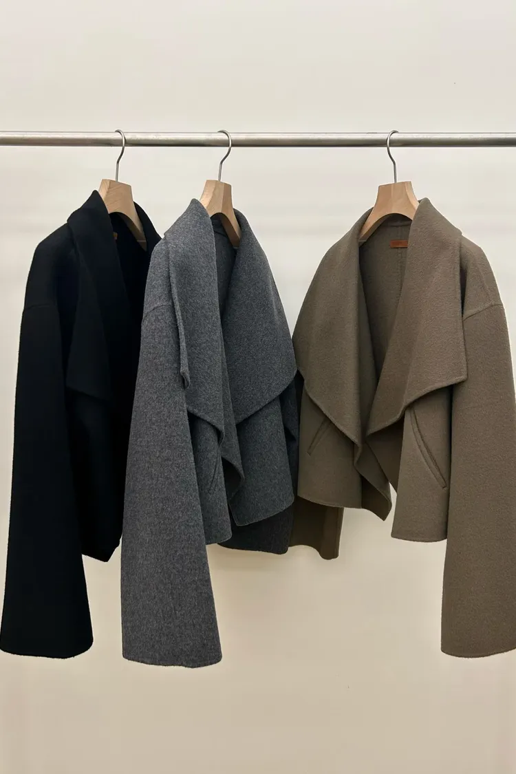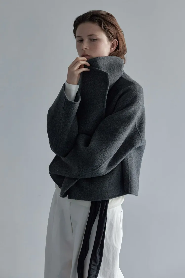 II218-限時優惠-Lemaire風翻領短大衣(wool 100%)