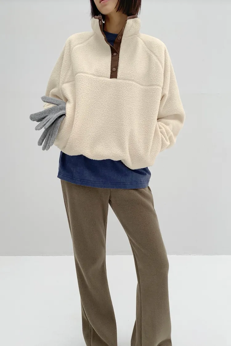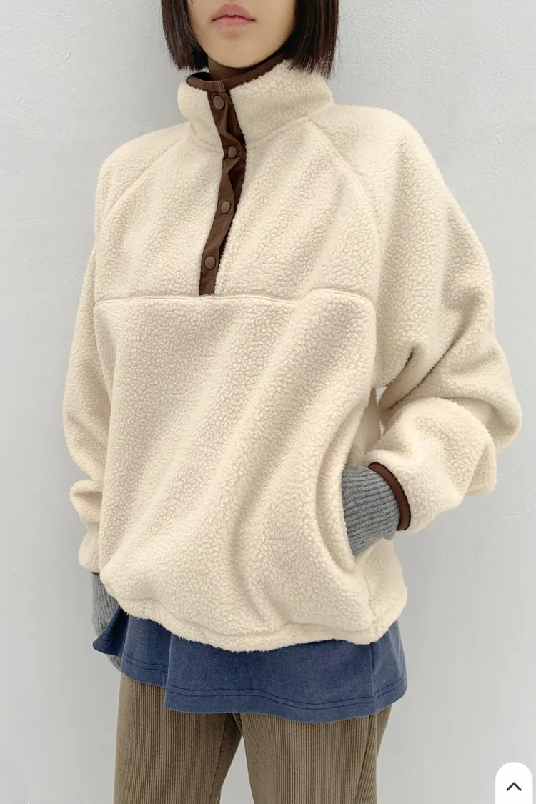 II240-奶呼呼的撞色搖粒絨上衣