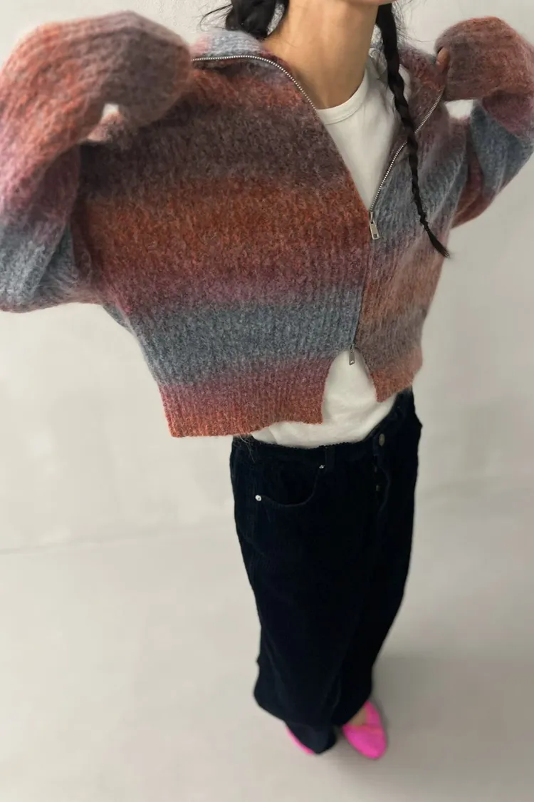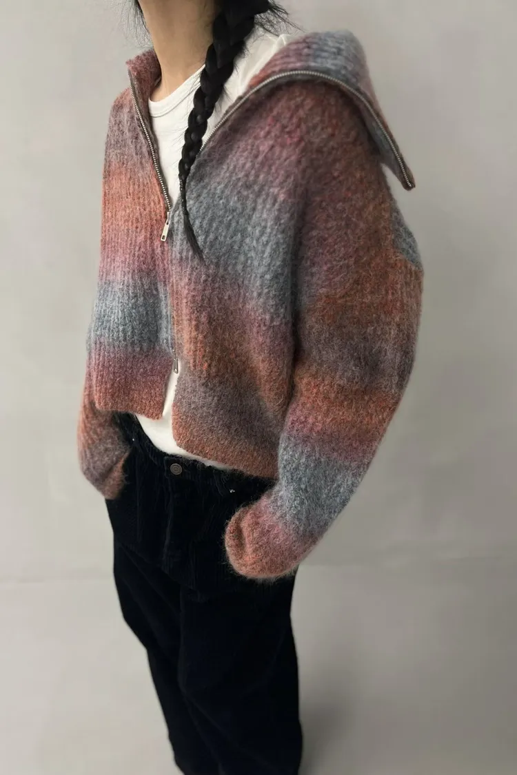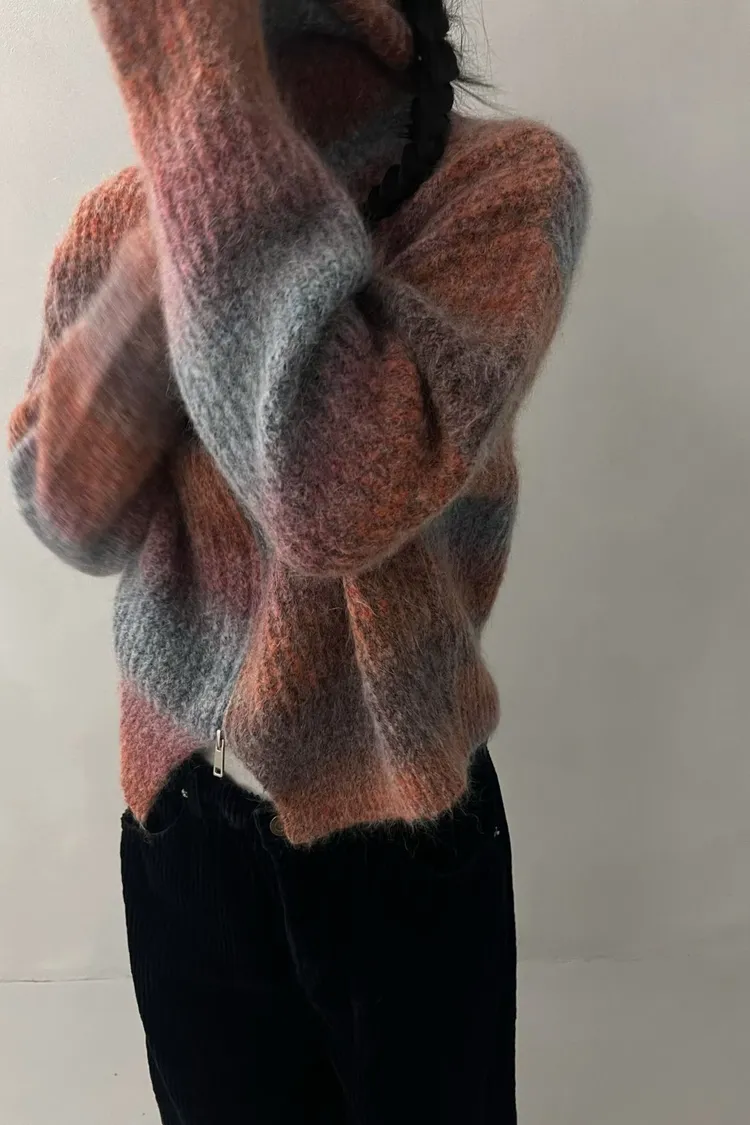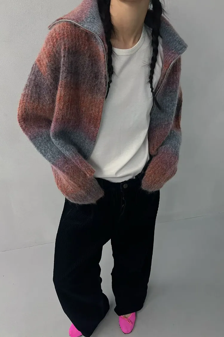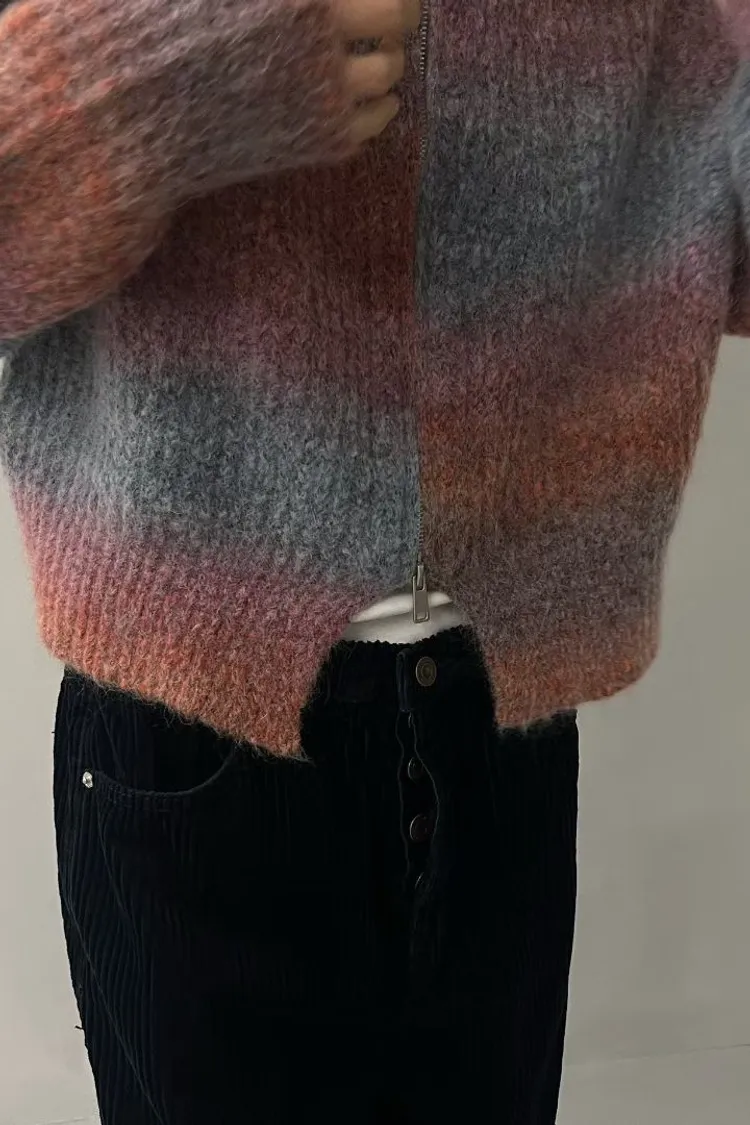 II244-新年快樂-拉鍊式漸層色莓果毛衣