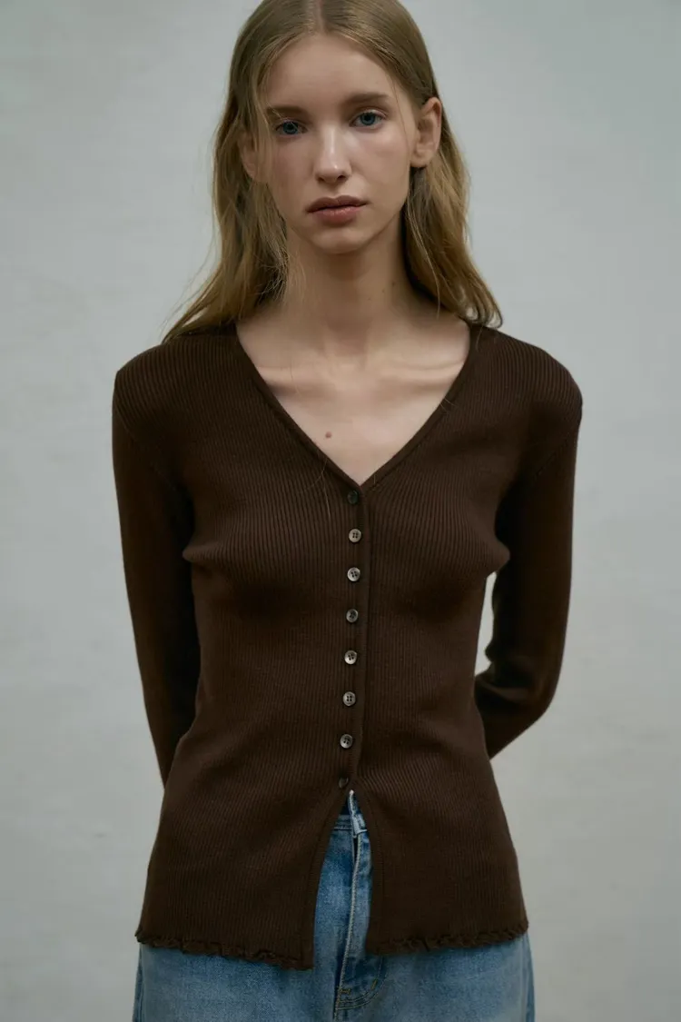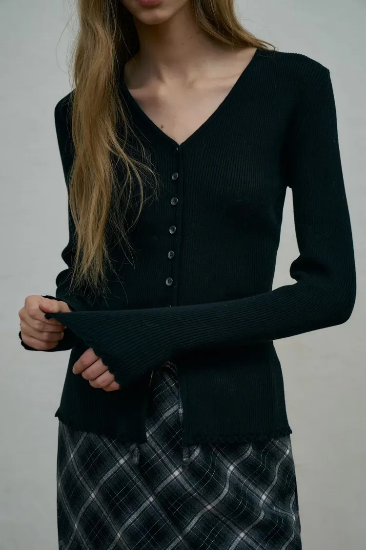 II253-高單折扣-X型排釦捲捲邊上衣