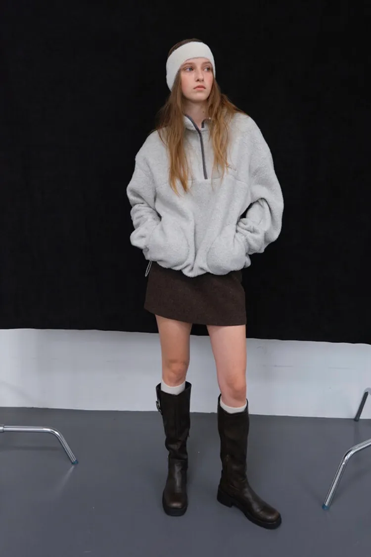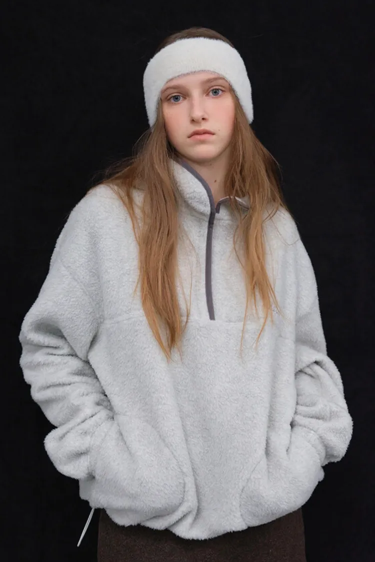 II257-小眾品牌款-圓領片撞色設計搖粒絨上衣