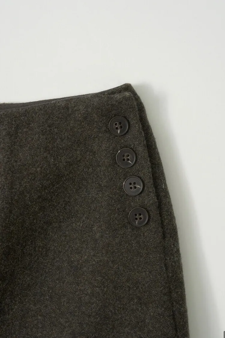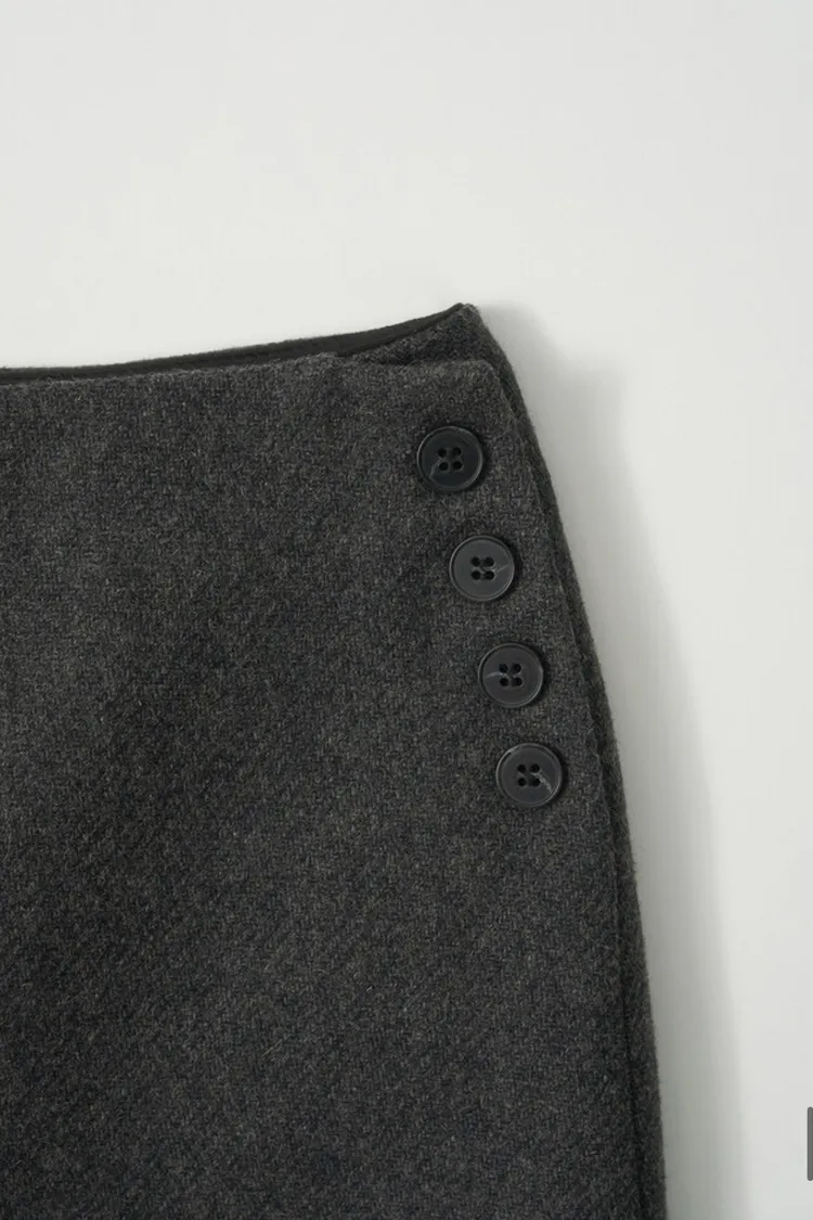 II258-小眾品牌款-側排釦質感冬日毛呢短裙