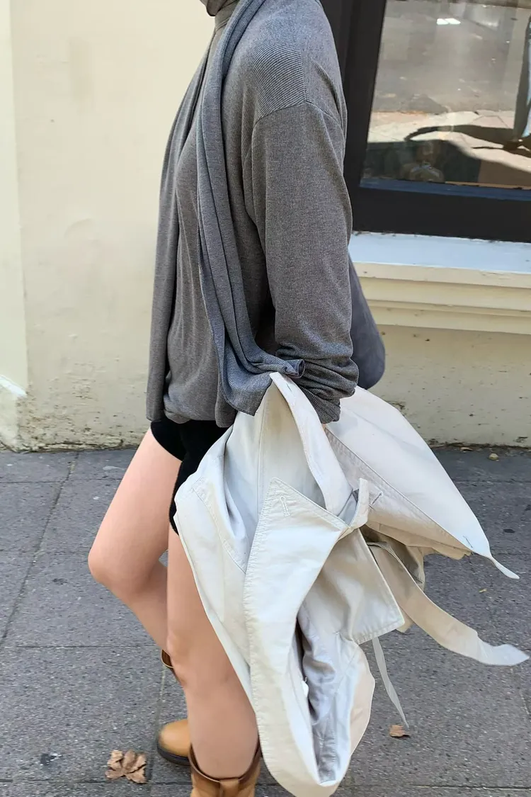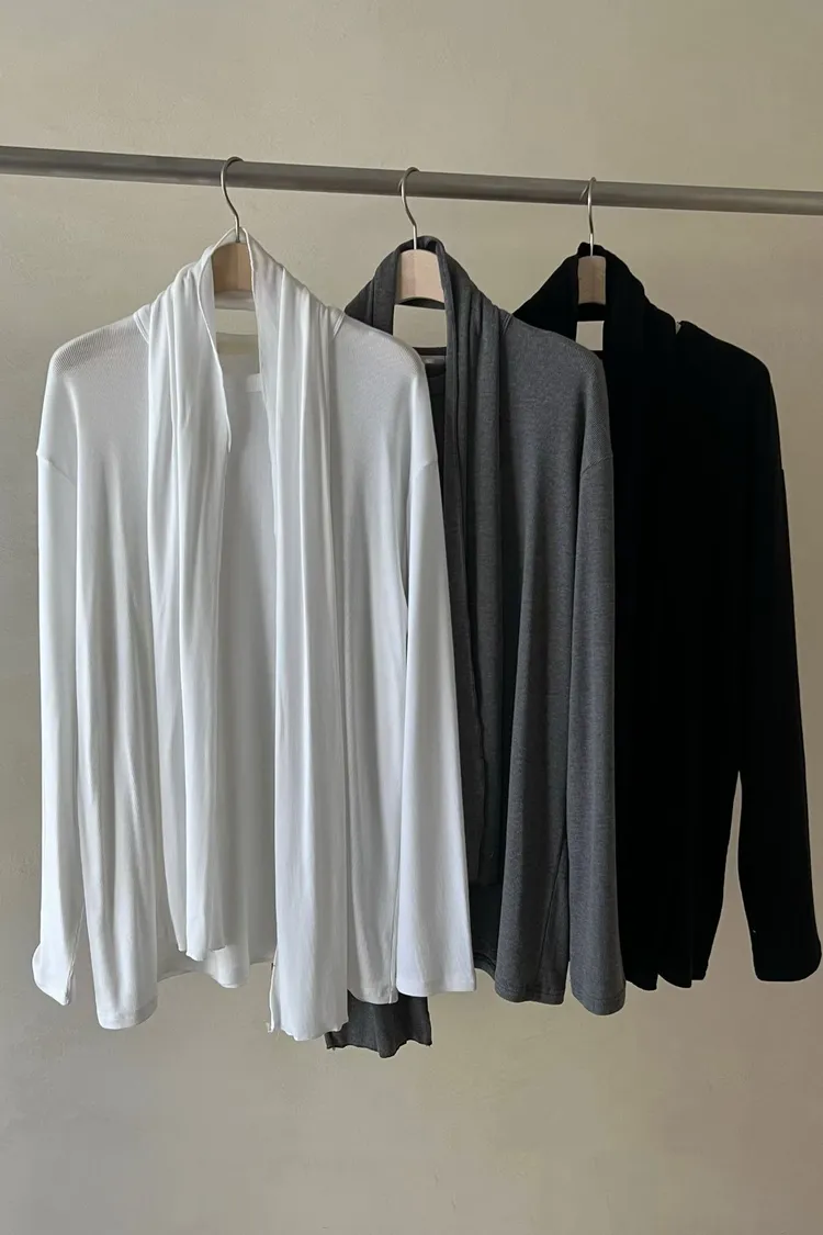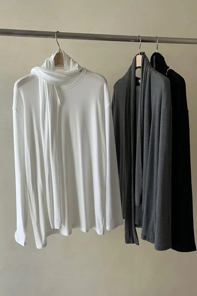 II270-領巾直紋天絲長版上衣組